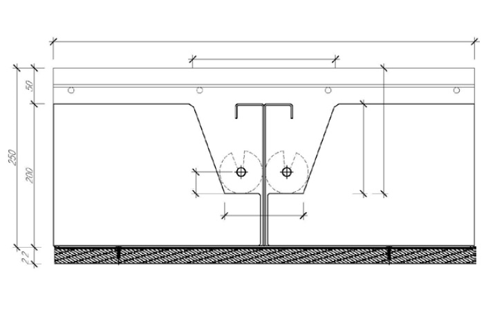 A partir de los datos geométricos de la versión del forjado mixto del SES, se ha reproducido la geometría de la sección transversal en el software Diamonds para su posterior análisis térmico y de resistencia al fuego.