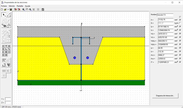Se realiza un modelo de cálculo de la sección equivalente con los materiales definidos en el punto anterior.
