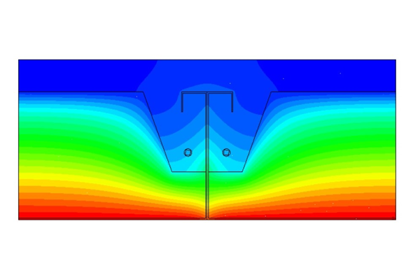 El software de análisis térmico resuelve el problema de transferencia de calor según el método de elementos finitos con un mallado apropiado a la geometría de análisis.